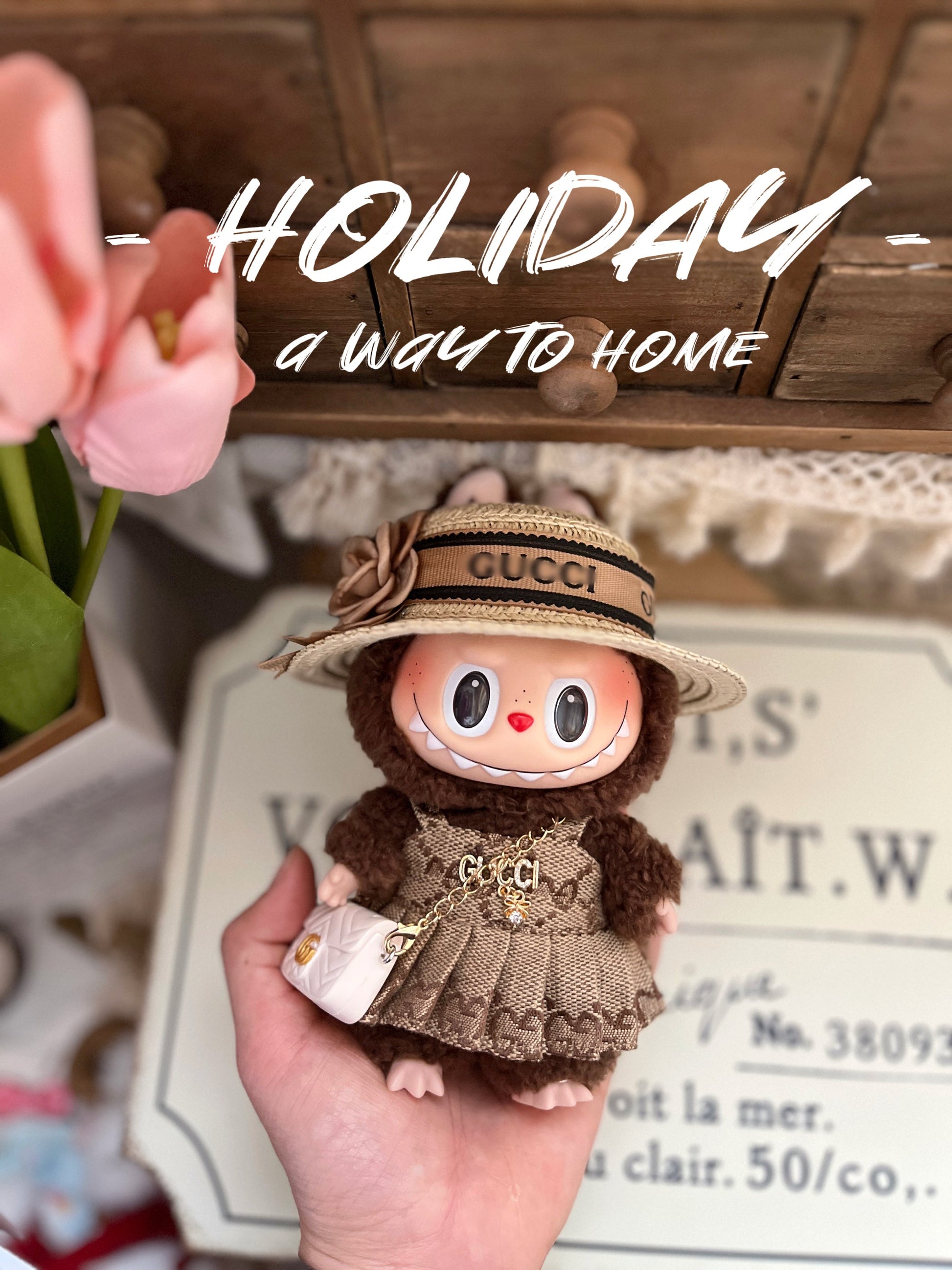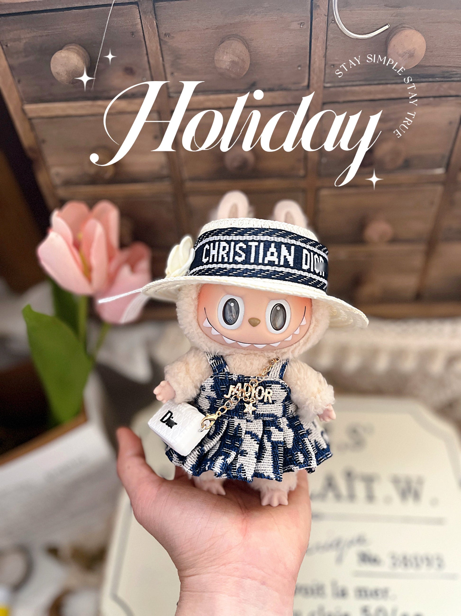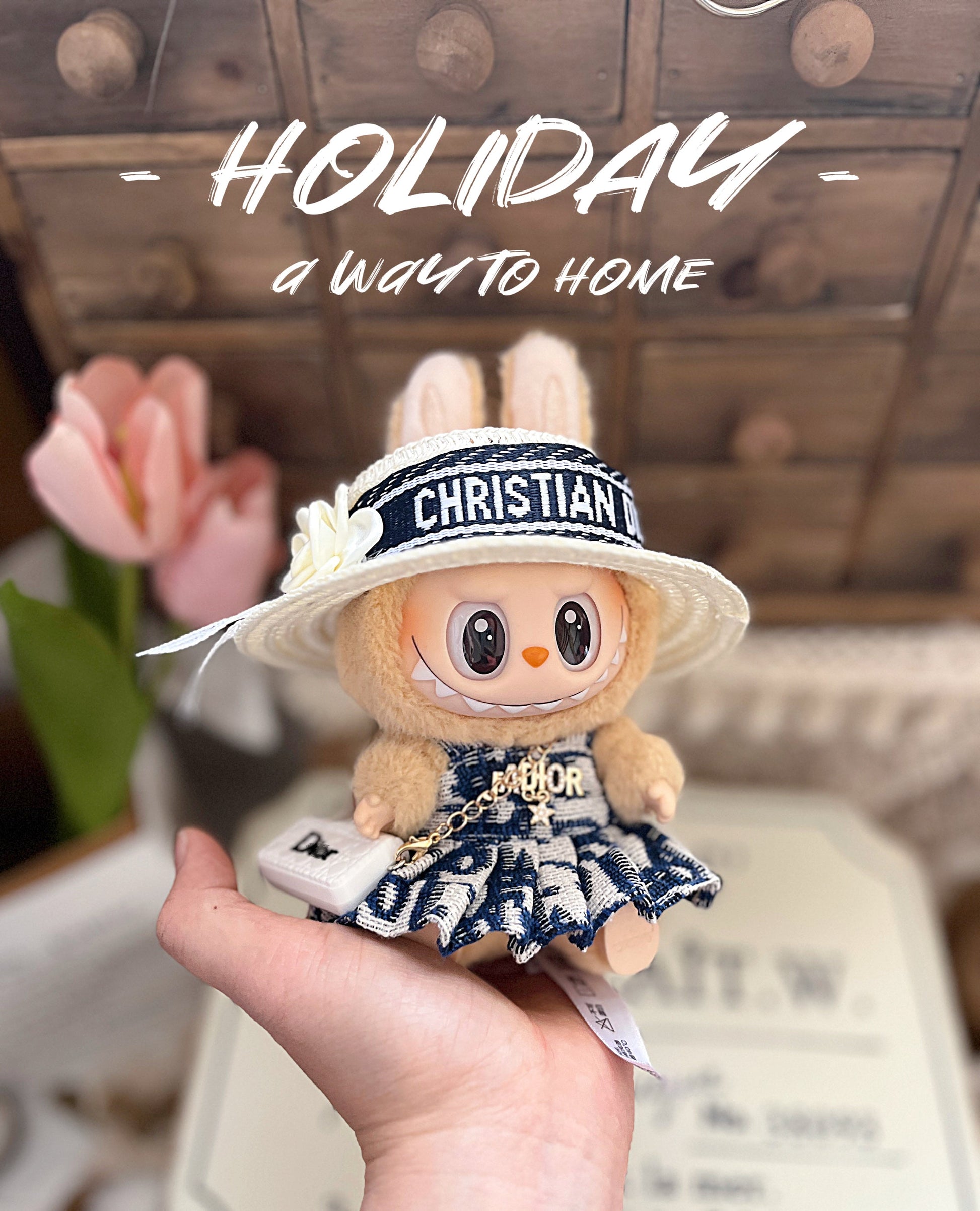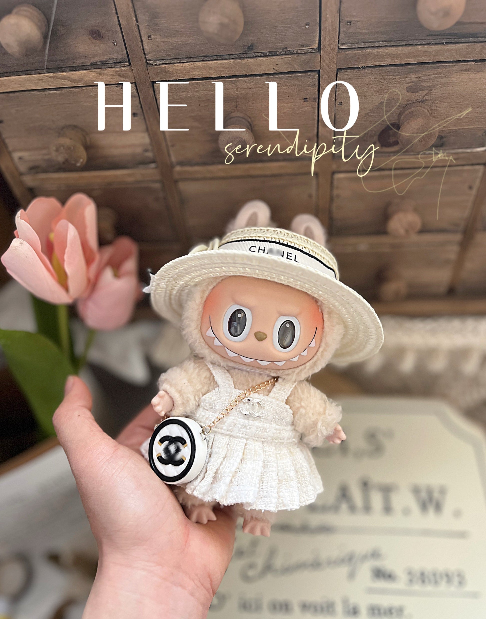 LABUBU 17cm Macaron 15cm Sitting Party Rubber Hanging Doll Clothes Outfit Change.