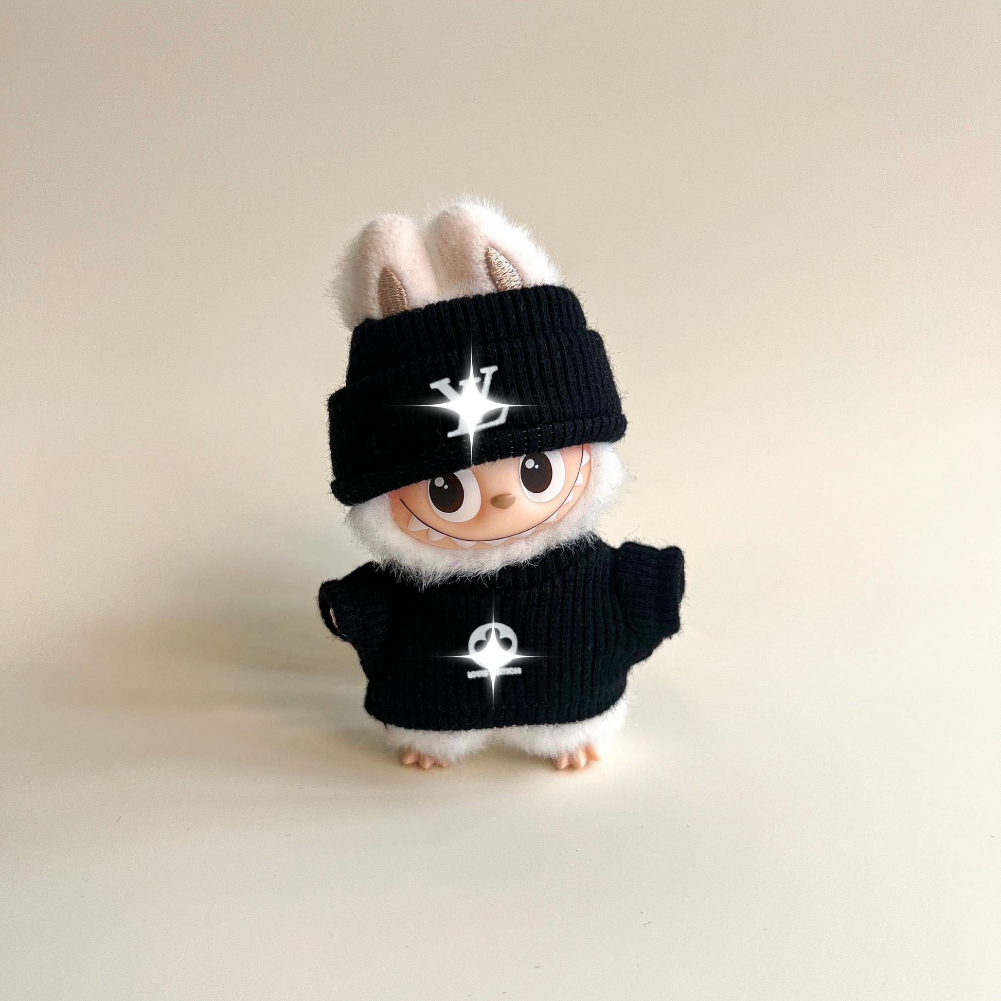 Add refined streetwear style to your Labubu 4.0 with the Black Monogram Knit Sweater & Beanie Set. Crafted in ribbed black knit fabric, both the sweater and beanie are accented with bold monogram‑style motifs. A collectible design that blends playful character with elevated Labubu fashion, perfect for distinctive Labubu outfits.
