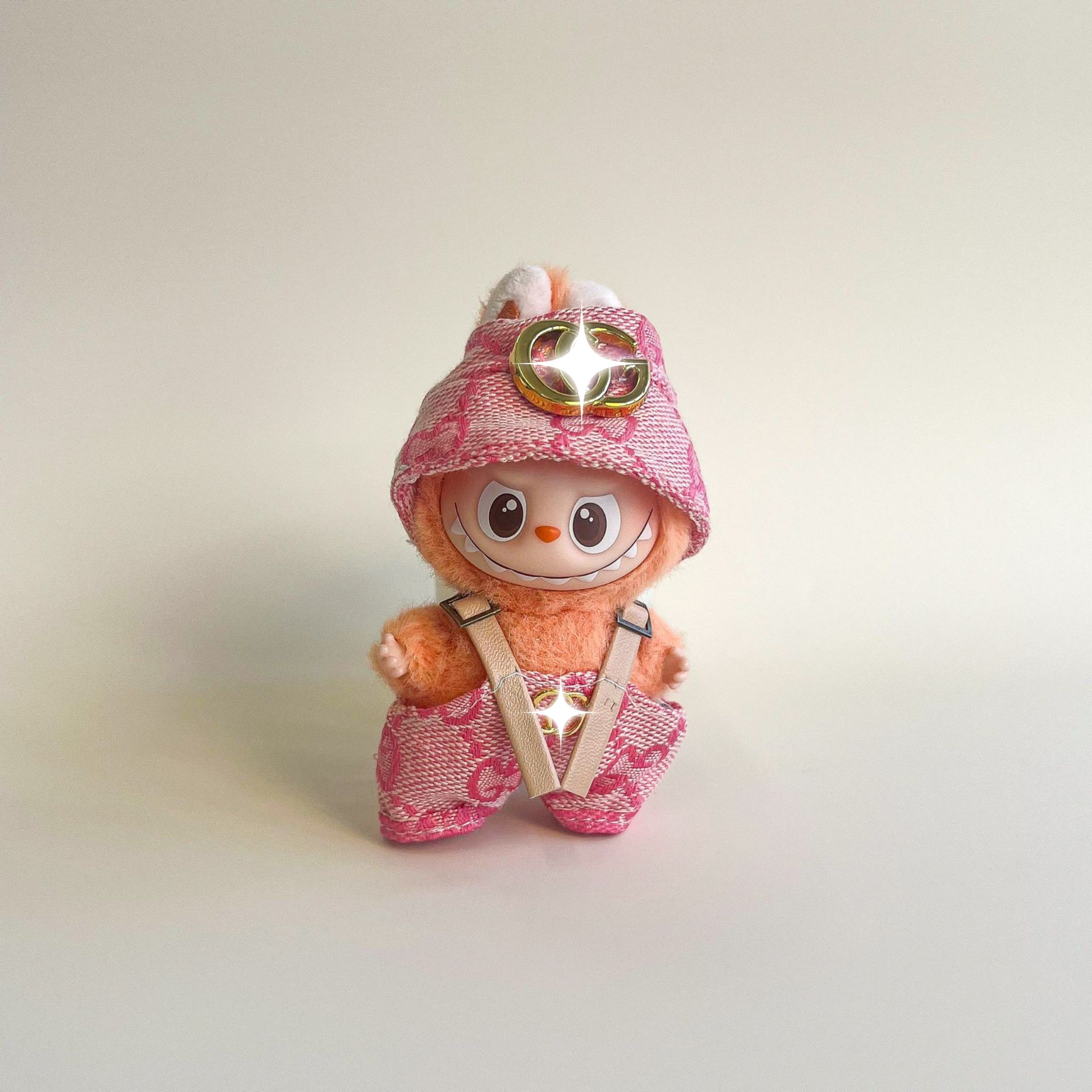 Transform your Labubu 4.0 with the Pink Monogram Denim Suspender Outfit. This coordinated set includes patterned denim suspender trousers and a matching bucket hat, blending playful color with refined detail. A versatile Labubu outfit that brings modern flair to Labubu fashion and enhances any curated collection.