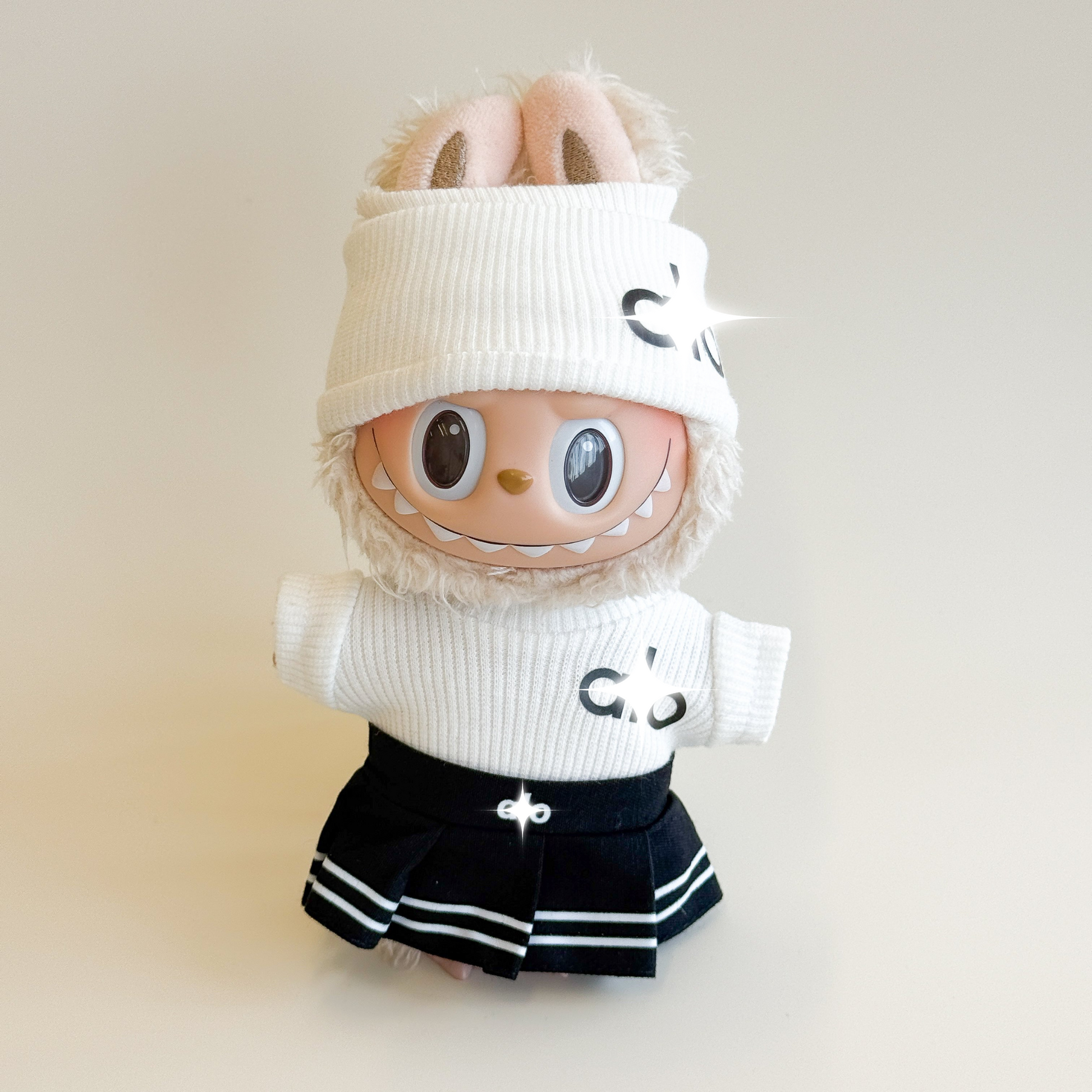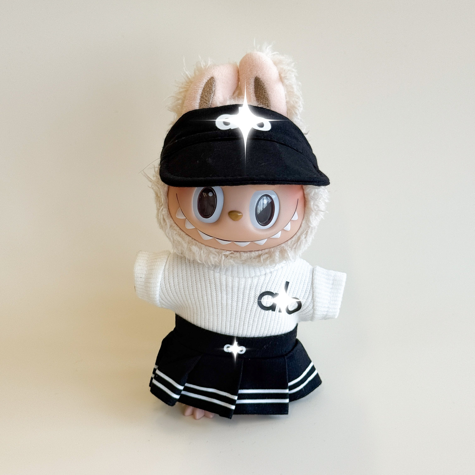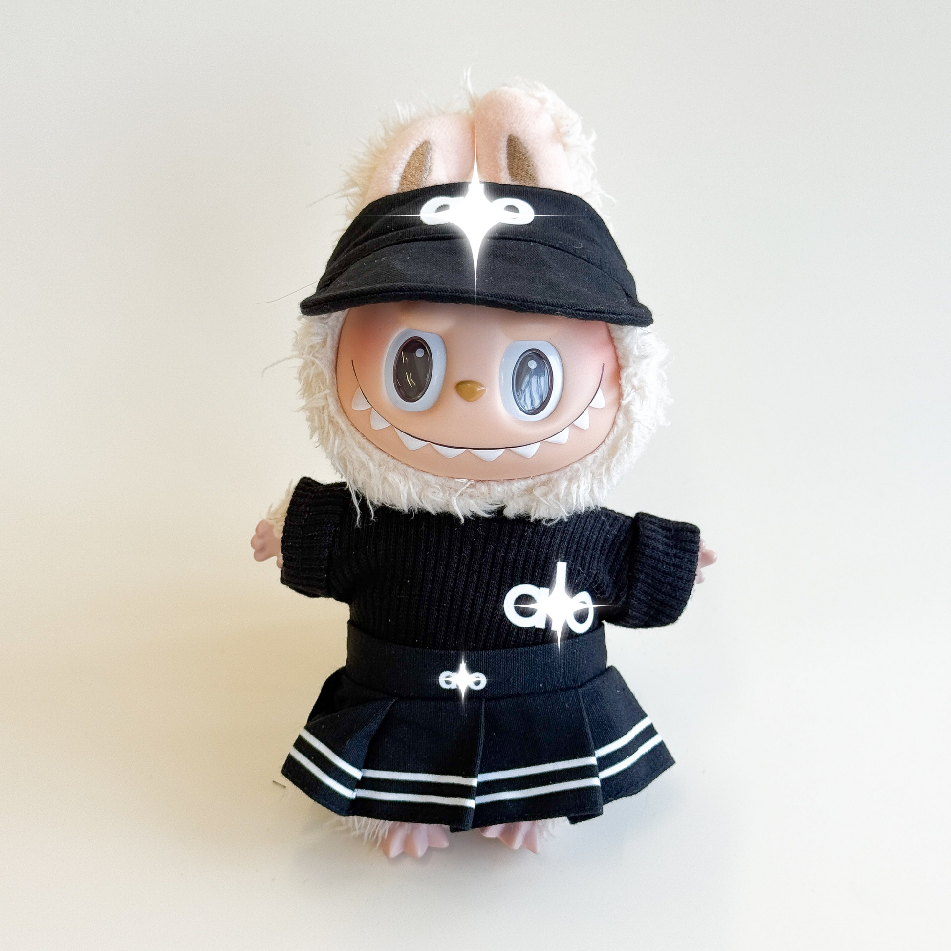 Mix and match the cap or beanie with the coordinating top and skirt to create different outfit styles. The clean monochrome design perfectly complements your Labubu’s fur while adding premium athleisure aesthetics to your collection.