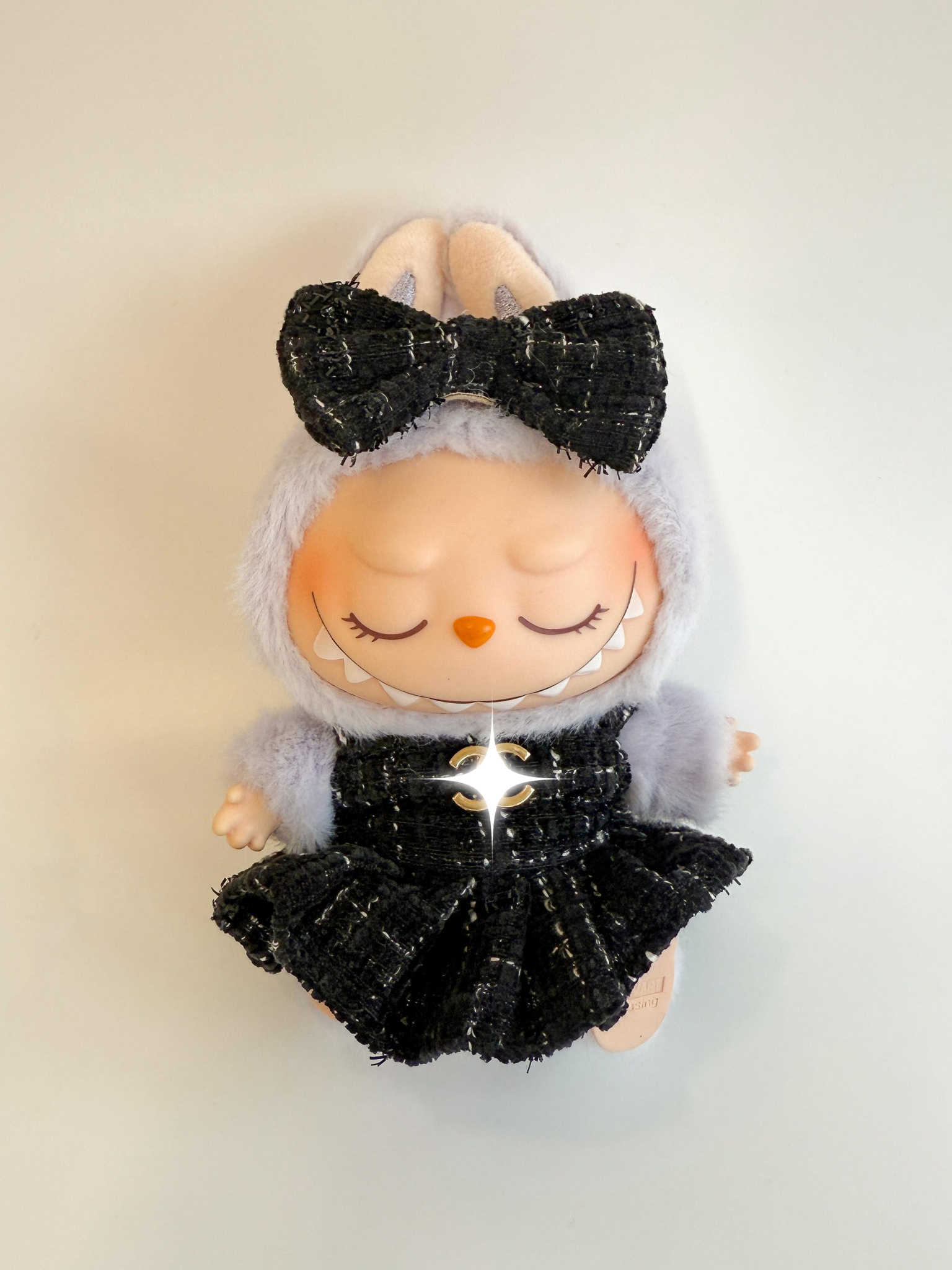 Dress your Labubu in Parisian style with the Haute Couture Black Tweed Dress Set.