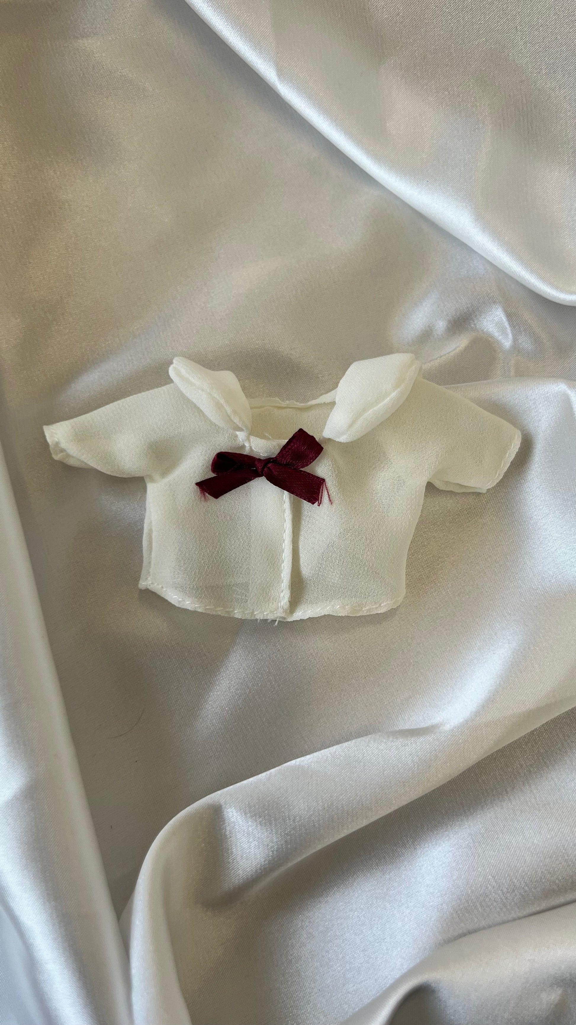 Add a touch of academic charm to your Labubu doll with this preppy school outfit! Featuring a cream knit cardigan, a classic plaid pleated skirt, and a bow detail with a gold heart charm, this set is perfect for creating a scholarly yet adorable look.