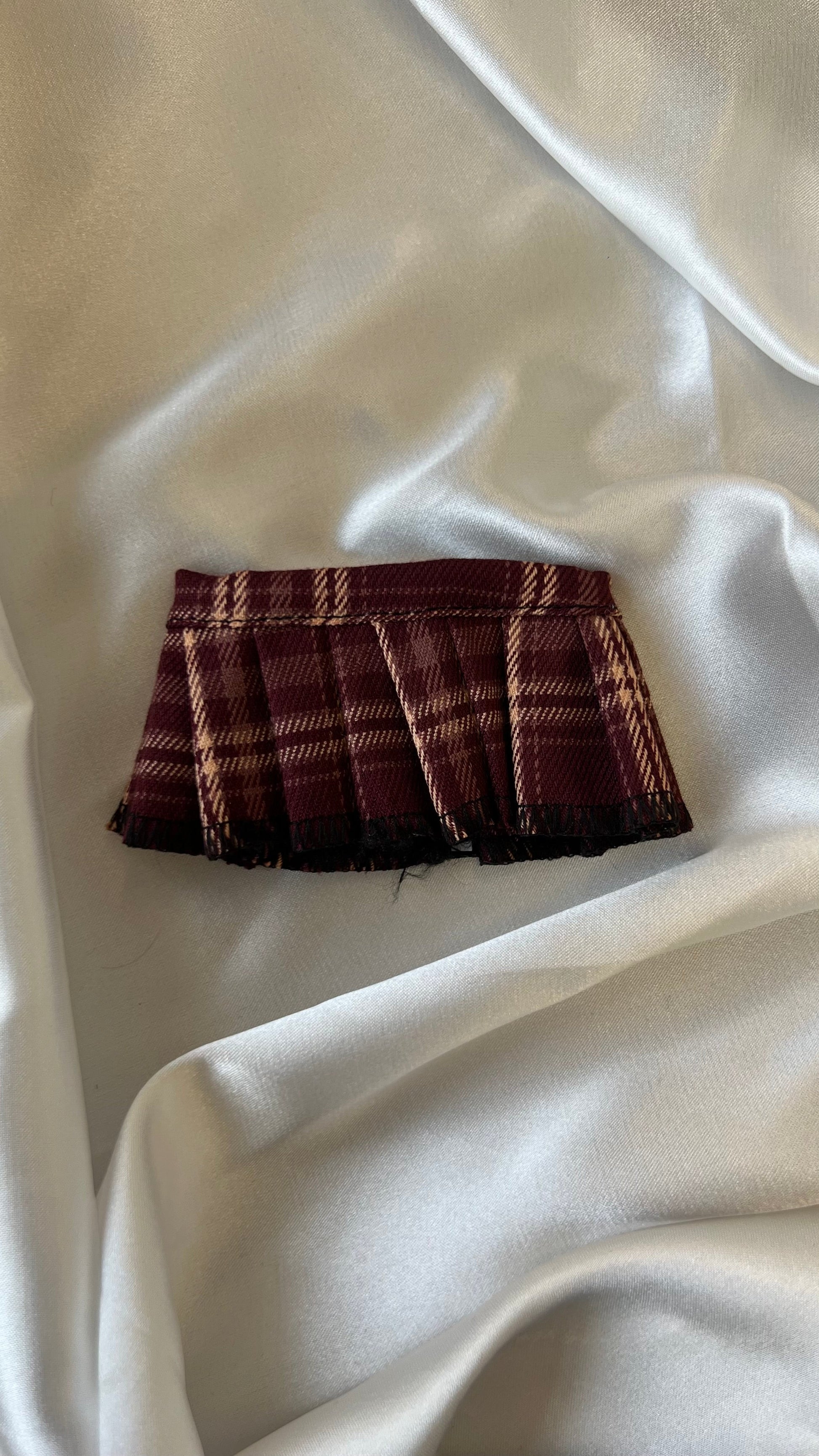 - Plaid Pleated Skirt: A classic brown plaid skirt that pairs perfectly with the cardigan for a timeless preppy vibe.